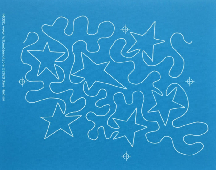 This stencil will make any quilt a star! It covers the quilt beautifully with a well balanced cross of meandering lines and sparkling stars. The registration marks make alignment a snap both side to side and row to row. Perfect for kids or patriotic quilt of all kinds!