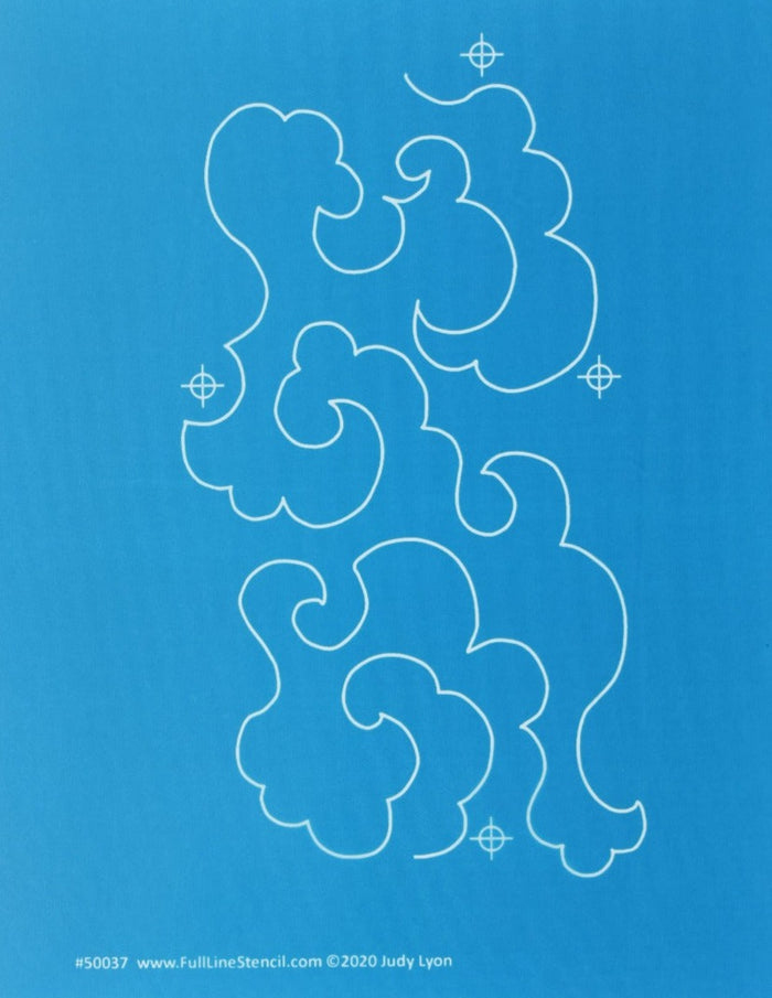 This is one of those easy to quilt, easy to align, get your quilt quilted in no time type of stencils that looks great every time. It’s perfect for any skill level. The registration marks make it really easy to place, transfer, and repeat across each row of your quilt. It’s perfect for baby quilts, what baby wouldn’t love being wrapped up in soft puffy clouds? We also have an enlarged version #50032. This one is ideal for smaller projects or when tighter quilting is desired.