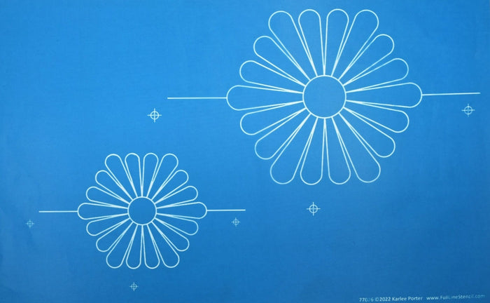 These Daisies are so adorable when placed in rows! They’re perfect for your next One Block Wonder quilt or any quilt made with hexagons! (They’re certainly not limited to that, though.) Sew each row with one continuous line. The Registration marks make the alignment of repeats and rows effortless. Extra added value with two sizes to choose from! ©2022 Karlee Porter